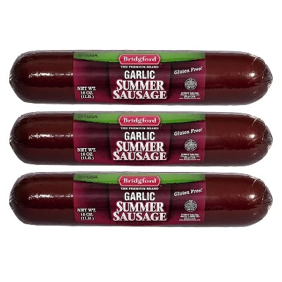 Bridgford Garlic Summer Sausage 16 Oz – Gluten-Free High Protein Garlic Infused Ready-to-Eat Summer Sausage For No-Carb Keto Diets