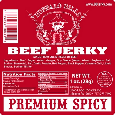 - Each bag has twelve 1oz packs of Buffalo Bills Premium Spicy Beef Jerky
