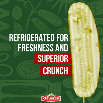 Our Claussen Sandwich Slices are crafted with fresh cucumbers picked straight from the vine and refrigerated for our classic Claussen crunch. Sliced perfectly for sandwiches, our pickle slices add a zesty garlic crunch to your sandwich. Pickled with a unique spice blend of turmeric, garlic and red pepper, our pickles are vegan, Kosher Certified and a fat free food. Claussen pickles are always refrigerated for superior crunch and freshness. Keep our 20-ounce resealable jar of pickle slices refrigerated. Whether you enjoy pickle chips or spears, slices or wholes, you can’t beat Claussen’s mouthwatering crunch.