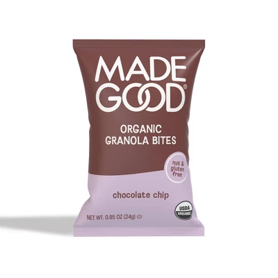 Keep your pantry full of the good stuff. MadeGood® Chocolate Chip Granola Bites take all that is loved by the classic, like dark chocolate chips and sweet crispy oats. Granola Bites are vegan, gluten-free, free from the top 9 allergens, and contains nutrients from 6 vegetable extracts. All rolled up into the perfect mini size balls. Perfect for popping!
