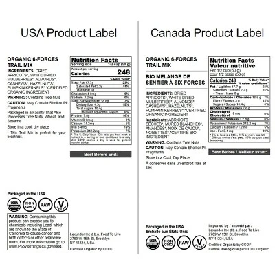 Organic 6-Forces Trail Mix will provide you with copper, manganese, magnesium, phosphorus, iron, calcium, zinc and selenium. In addition, this mix is rich in B-vitamins – B1, B2, B3, B5, B6, and B9. As you know, they are an essential component of the daily diet. Moreover, it is a good source of vitamins A, C, E, and K.