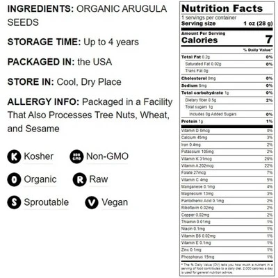 Organic Arugula Seeds are extremely versatile and will definitely be a perfect fit for a healthy food lover. Edible arugula seeds are a spice of the mustard family, which are often used for growing microgreens at home. Arugula sprouts are very delicious and packed with antioxidants and essential nutrients. They contain vitamins C, B and K as well as calcium, iron, and zinc.