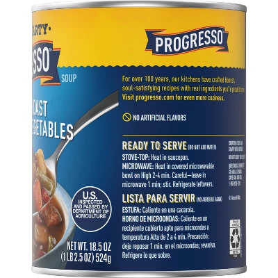 Progresso Beef Pot Roast with Country Vegetables canned soup is loaded with tasty ingredients like tender chunks of homestyle pot roast, savory vegetables, and beef broth. It’s a soup that tastes more like a stew. Unlike instant ramen, Progresso soup is ready to serve, no need to add water. Enjoy a warm bowl or cup that’s ready in minutes with a toasted sandwich or fresh bread. Looking for convenience on a weeknight? Try our Easy Beef Stew in Biscuit Cups recipe, using our tasty soup and Pillsbury Grands! Southern Homestyle Buttermilk Biscuits. Progresso beef pot roast soup contains no artificial flavors and is gluten free. You’ll love the hearty, savory satisfaction of a classic Progresso canned soup. Heat it up on the stove or in the microwave using a microwave-safe bowl for hot soup in under 5 minutes. Let soup sit for 1 minute before removing from the microwave. Handle with care, stir, eat, and enjoy. At Progresso, we’re passionate about making great products. We’ve been creating premium soups for more than 100 years. And today, Progresso still uses quality ingredients for a tasteful flavor found only in our line of canned soup products.