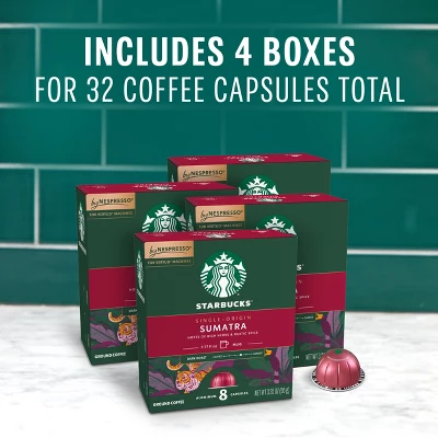 Enjoy the authentic café taste of Starbucks coffee at home like never before on Nespresso Vertuo Machines. Made with the premium-quality Starbucks coffee that you know and love, Starbucks by Nespresso capsules are developed with Nespresso to work perfectly with the Nespresso Vertuo system and are fully recyclable through the Nespresso recycling program. Each cup of Starbucks Single-Origin Sumatra dark-roast coffee is bold with earthy and herbal notes. Each precision-brewed Starbucks coffee is made with 100% arabica coffee beans. Authentically delicious perfection is just a cup away. Nestlé uses Starbucks trademarks under license. NESPRESSO is a registered trademark of Société des Produits Nestlé S.A., Vevey, Switzerland. NET WT 3.35 OZ (95 g) each