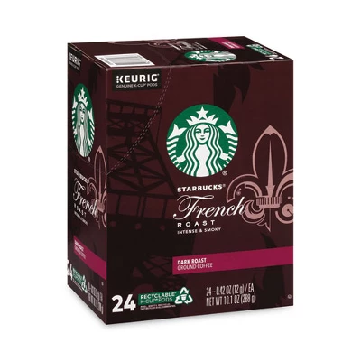 Enjoy a dark roast with intense and smoky flavors—Starbucks® darkest and boldest and not for the faint of heart. It starts with high-quality beans, which can withstand the intense fires that make French Roast what it is, that are then roasted to their edge. The result is a delectably smoky cup, with intense and uncompromising flavor. Convenient K-Cups® are designed for the Keurig® brewing system.