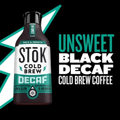 - DECAF COLD BREW: One 48 fl oz bottle of ready to drink Unsweetened, Black, SToK Decaf Cold Brew Coffee with 15 calories per 12 fl oz serving