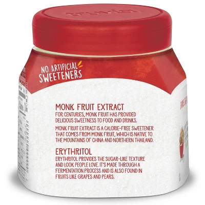 - Zero-calorie sugar substitute made with stevia leaf extract, erythritol, and natural flavors